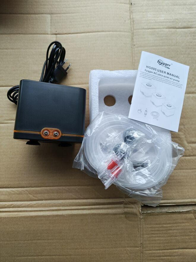 Widoczny na zdjęciu przedmiot to pompa powietrza do akwarium Hygger HG-095.Jest to bardzo cicha pompa powietrza AC, idealna do akwariów.