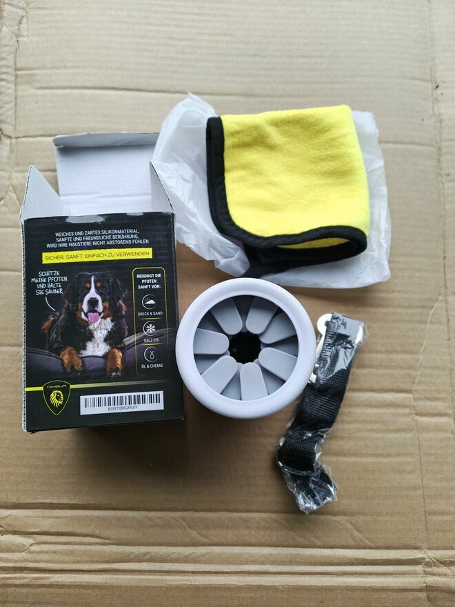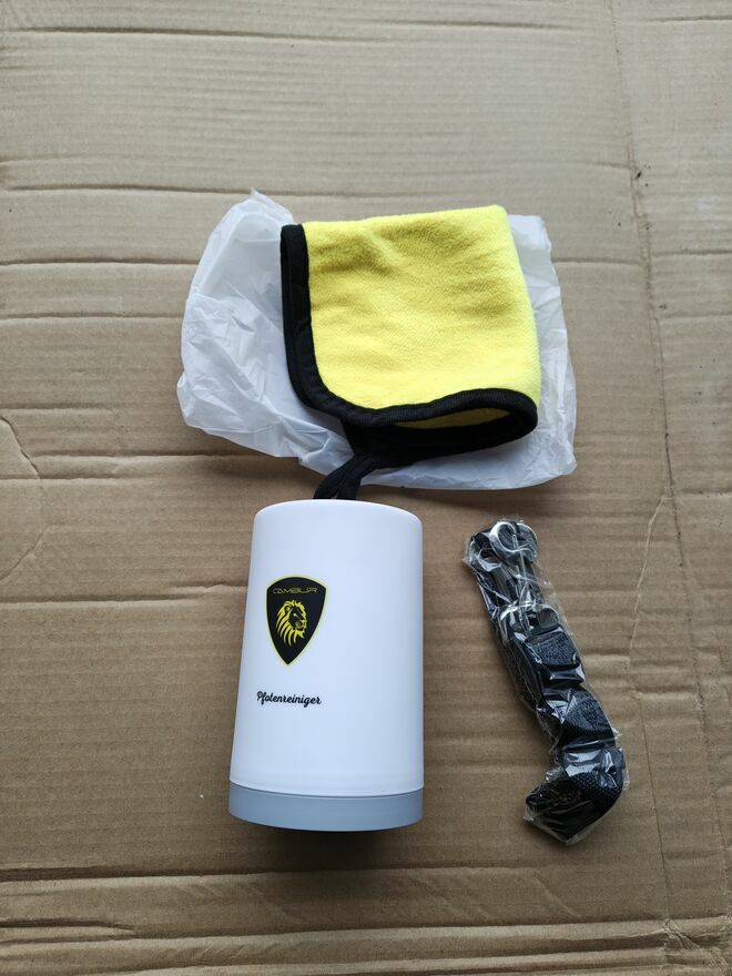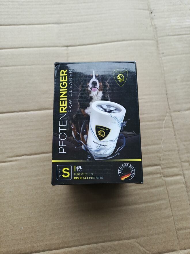 Wystarczy nalać do środka wodę, włożyć łapę psa i obrócić kubkiem, a następnie osuszyć łapę ręcznikiem.